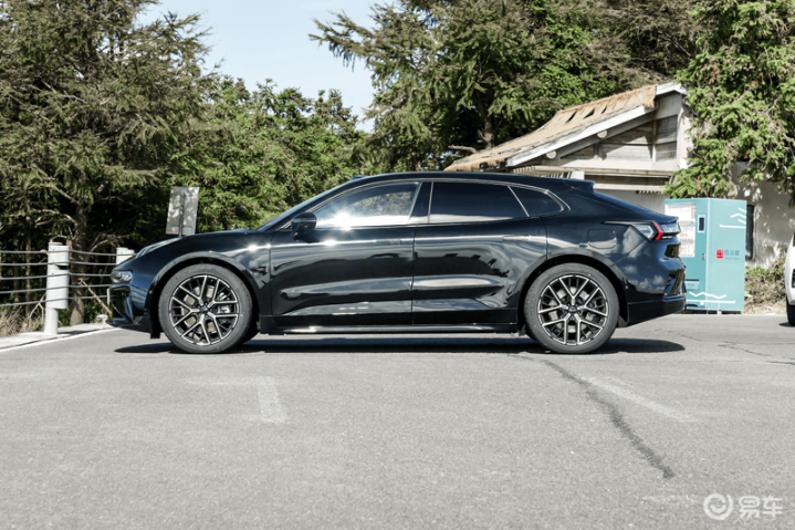 侧面来看,新车整体造型较为平滑,并没有采用过多的线条刻画肌肉感,车尾部分,新车在车顶末端采用了一个波浪形的扰流板,尾部是贯穿式的LED灯组。车身尺寸方面,车辆长宽高分别为4977/1999/1545(空气悬架1533)mm,轴距为3005mm。